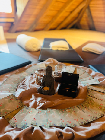Vor dem Abendessen gibt es oben im neu renovierten Dachgeschoss in stimmiger Atmosphäre eine ganz besondere Yin Yoga Einheit.