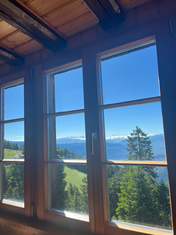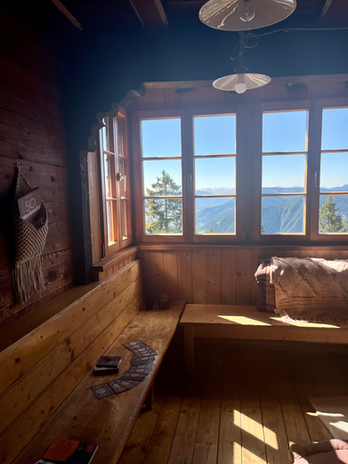 Das Vigiljoch erreicht man nur mit dem Sessellift oder zu Fuß, was schon der erste Schritt ist, um in die richtige Stimmung zu kommen. Sobald du oben angekommen bist, wirst du von einem großen, charmanten Haus begrüßt, das mit viel Liebe und Geschichte ausgestattet ist. In der alten Stube fühlt sich alles wie zuhause an – gemütlich und warm. Es gibt mehrere Räume, die ideal für unsere Yoga-Praxis sind, und bei schönem Wetter öffnen wir die Türen zum großen Garten und machen unsere Sonnengrüße draußen, mitten in der Natur.